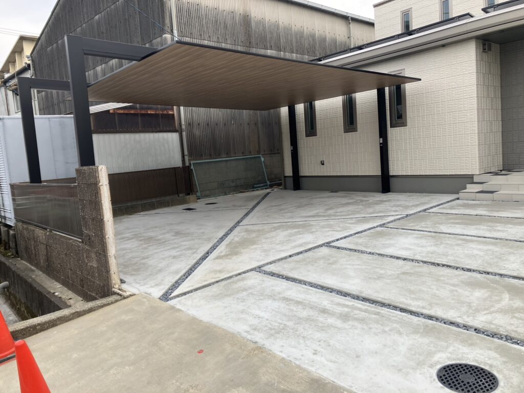 カースペース全体には、丁寧に仕上げた土間コンクリートを打設しました。