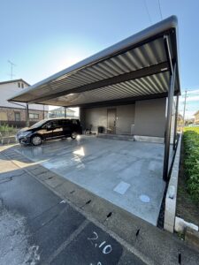 【大口町】間口10mの圧倒的スケール!オリジナル折半カーポートと開放感あふれる大判タイルデッキ
