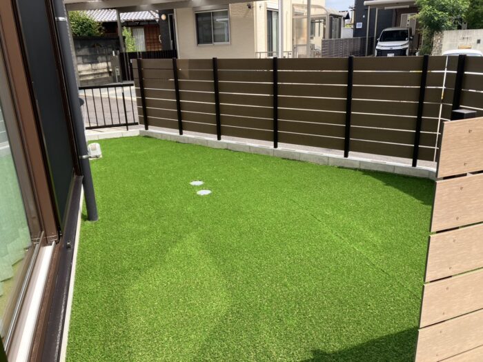 - メリット: 1年中緑が綺麗。メンテナンス(草抜き・芝刈り)が不要。場所を選ばず設置できる。