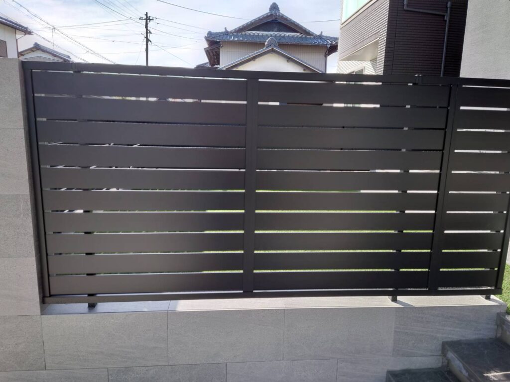 敷地境界600〜800mmLIXIL UF8型 / YKK T2型コスパ重視。風通しが良く、圧迫感ゼロ。