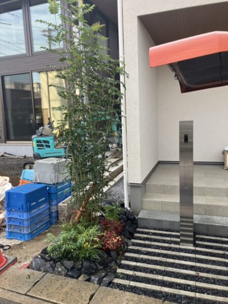 一宮市にて、建物の洗練されたデザインを引き立てるエクステリアが完成しました。