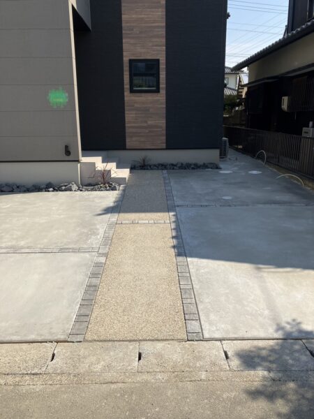 - メリット: 前回の春日井市の事例でも使用した**ユニソンの「カッシア」**などの石畳風ブロックを埋め込みます。雑草を防ぎつつ、高級感を演出できます。