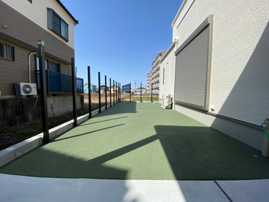 また、通常のコンクリートに比べて表面の温度上昇が抑えられるため、夏場のお庭遊びも快適。雑草対策としての機能も兼ね備えた、賢い選択です。