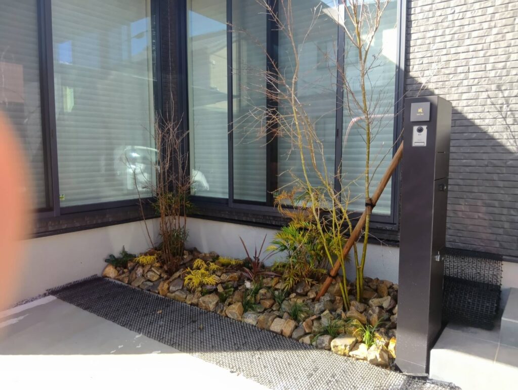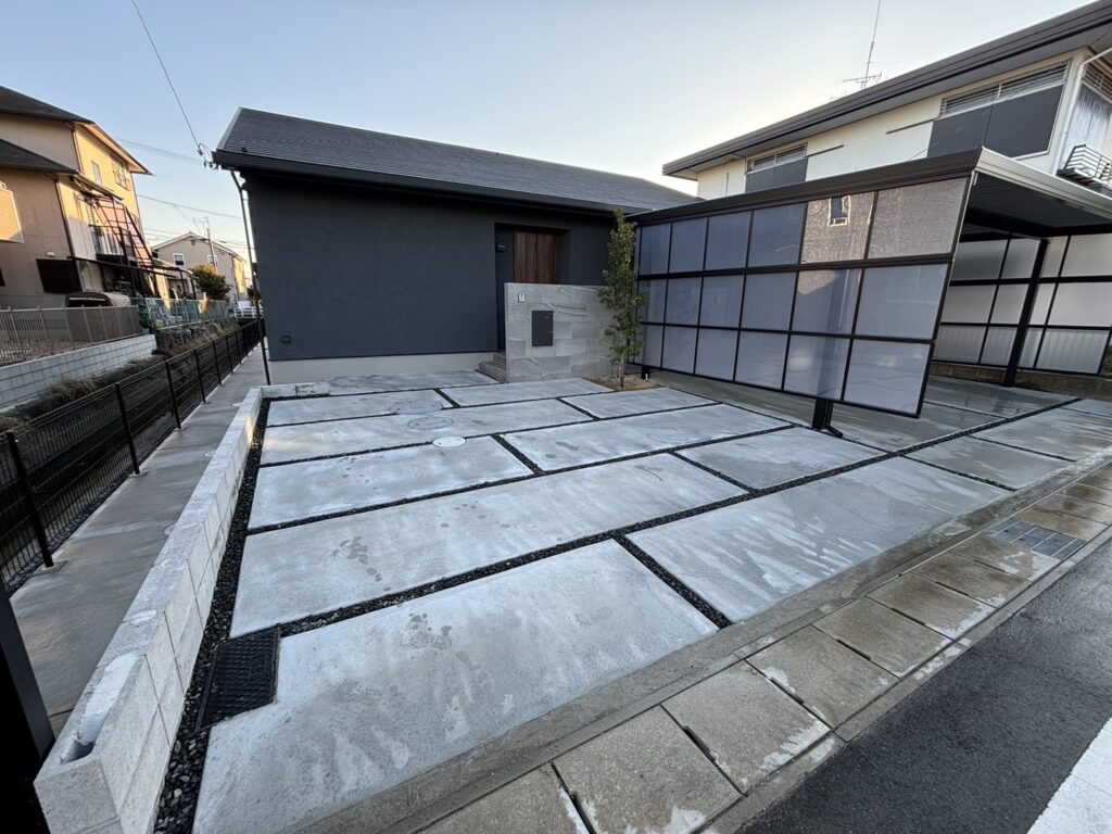 【施工事例】小牧市|スタイリッシュな「フーゴF」と、機能美を追求したジョリパット門柱の外構