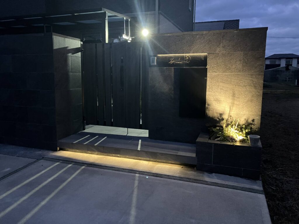 小牧市|600角タイル門柱と浮き階段で魅せる、洗練されたラグジュアリーモダン外構