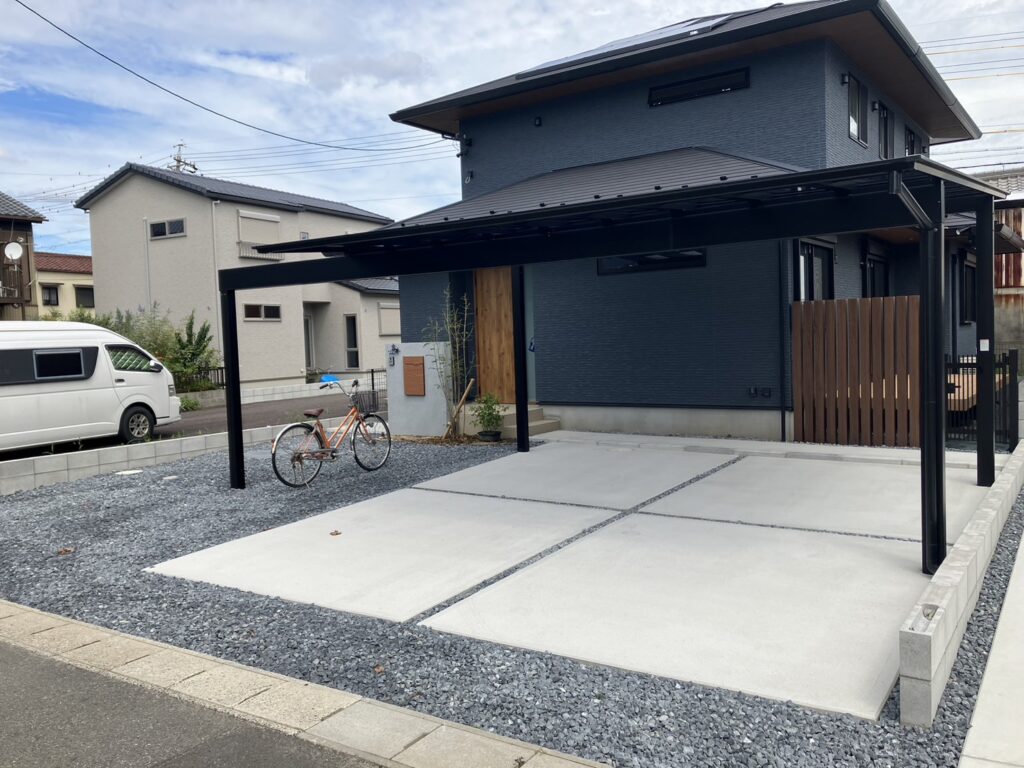 【施工事例】小牧市|LIXIL「カーポートSC」梁延長モデルで魅せる、洗練されたタイル門柱の家