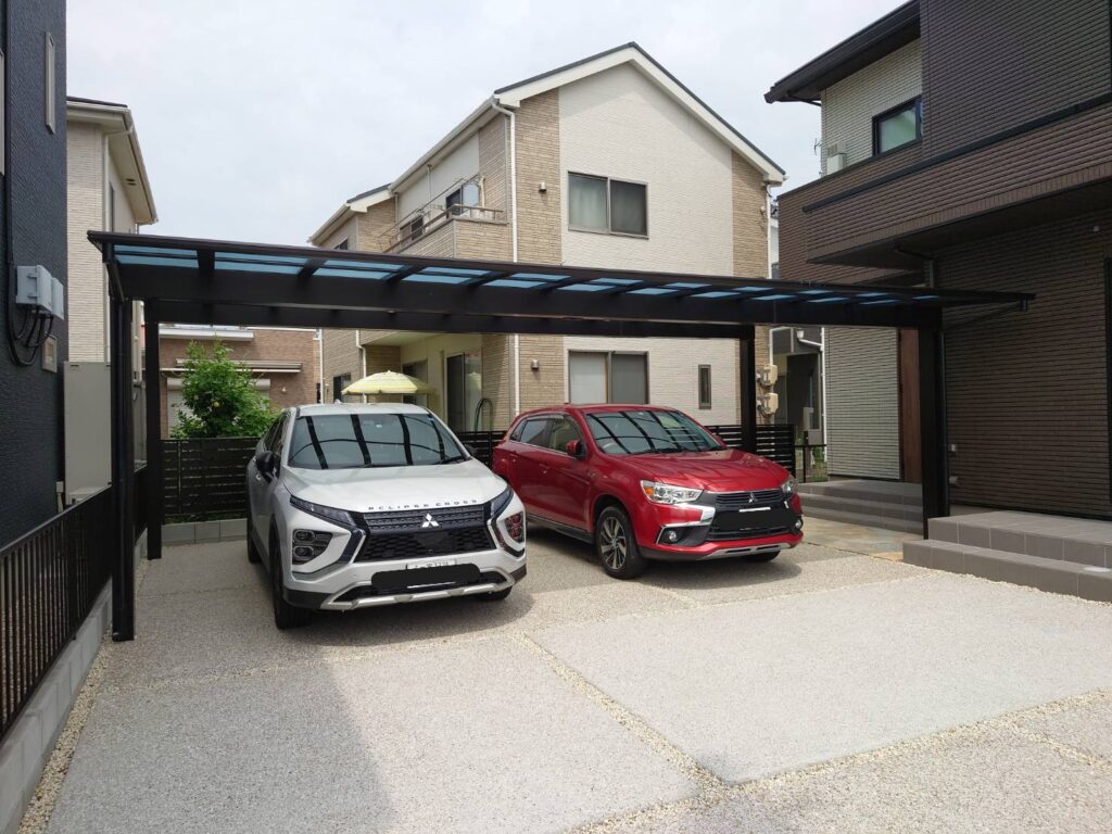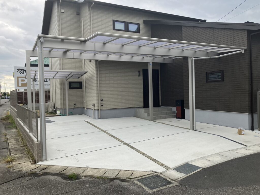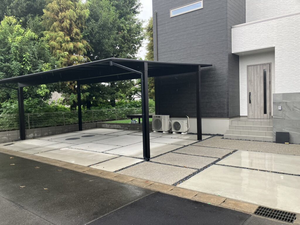 大口町|3台用カーポートが彩る、機能美を追求したモノトーン外構