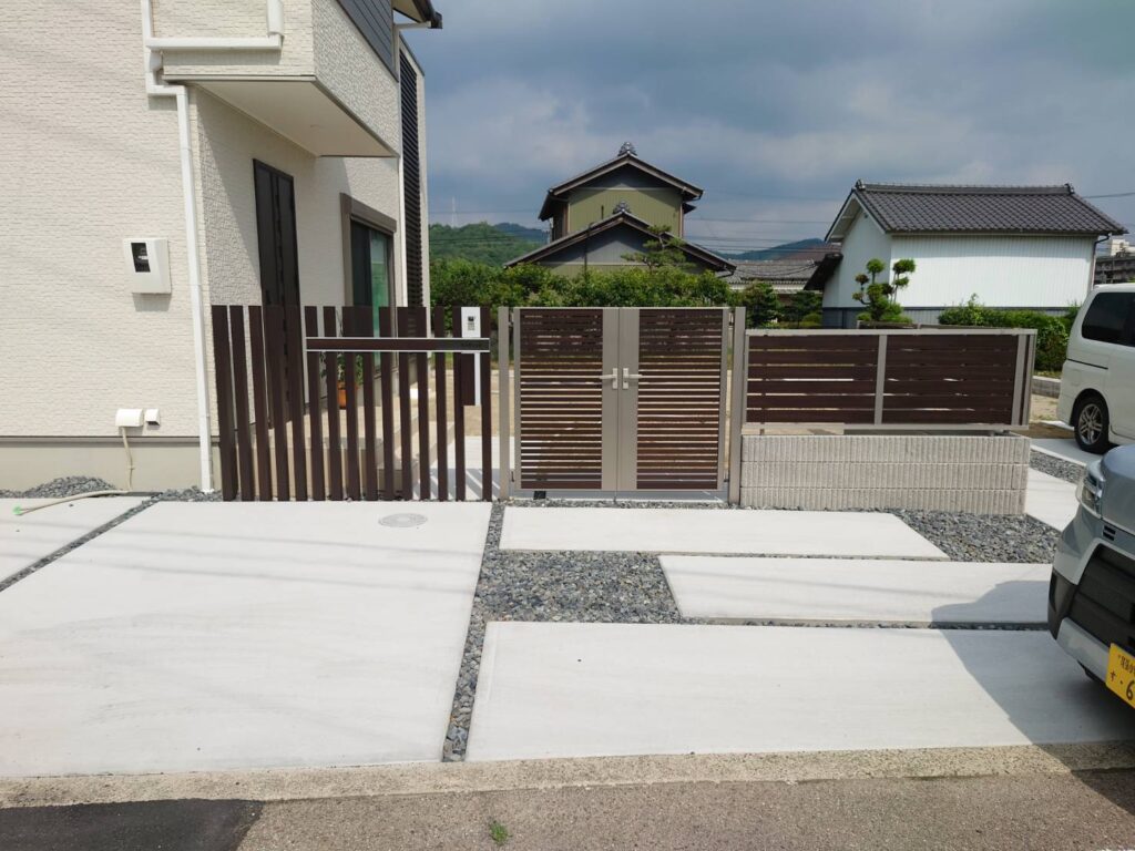 【施工事例】小牧市|スタイリッシュな「フーゴF」と、機能美を追求したジョリパット門柱の外構